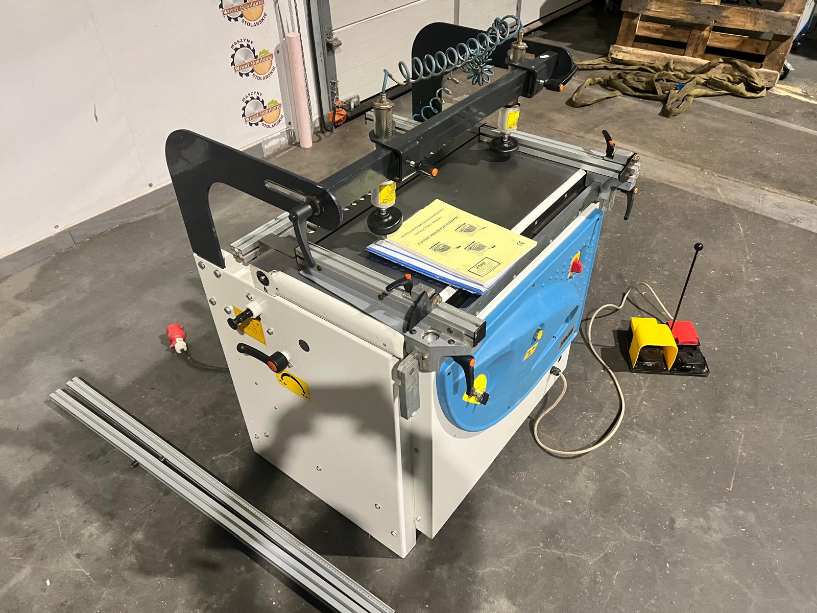 - Dwa pneumatyczne dociski materiału